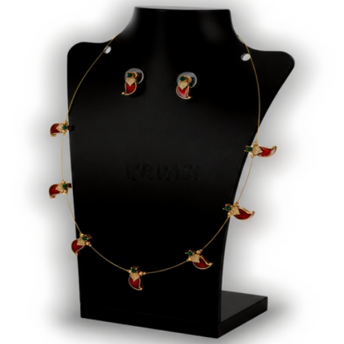 The necklace is often gold-plated and is worn during weddings, festivals, and other traditional events. It pairs well with ethnic outfits and is usually matched with earrings or other accessories. The palakka design holds cultural meaning and is passed down through generations, making this necklace both meaningful and stylish for special occasions.